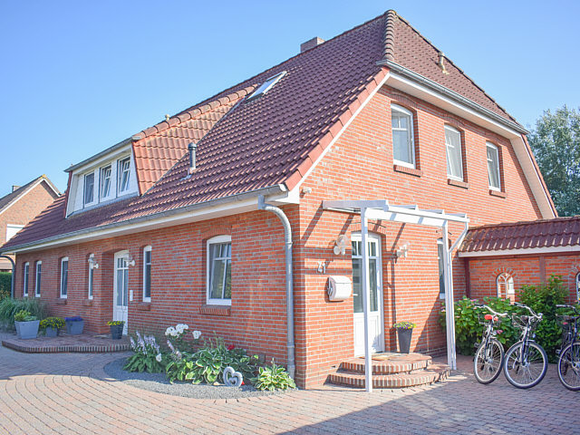 Das Haus steht am nördlichen Stadtrand von Niebüll. Der große Garten ähnelt einem kleinen Park mit Sitzgelegenheiten für unsere Gäste. Die Ferienwohnungen "Strandgut" (✰✰✰) und "Wellenreiter" (✰✰✰✰ mit separatem Zugang) befinden sich im Obergeschoss. Ein PKW-Stellplatz steht direkt vor dem Haus zur Verfügung. Mitgebrachte Fahrräder können (ohne Aufpreis) in einem verschlossenem Fahrradraum abgestellt werden. Das Rauchen im Haus ist nicht gestattet. Haustiere sind in der Wohnung nicht erwünscht.
